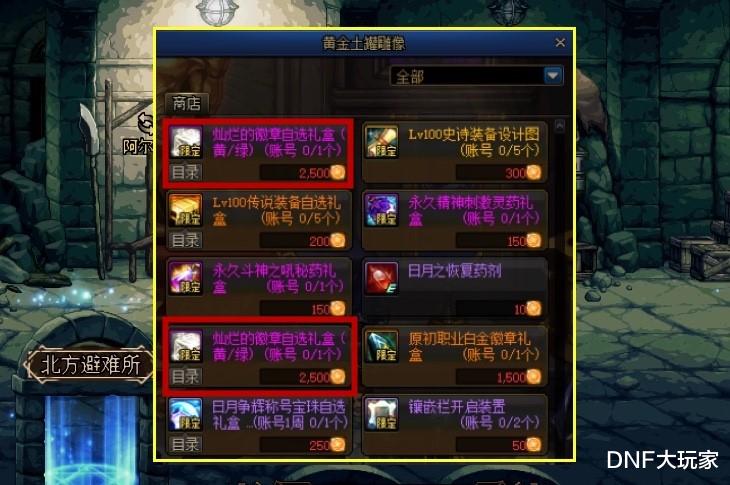 黄金土罐商店奖励进行了更新,保留了原有的“灿烂徽章、5件工作服史诗、5件传说自选、1个永久CD药、1个永久三攻药”的基础上,新增了两大核心道具:“又一个灿烂徽章礼盒”和“一个白金徽章随机礼盒”,此外还有称号宝珠自选礼盒1个和2个镶嵌栏开启装置。对于魔法职业来说,2个灿烂徽章礼盒是必须兑换的,需要5000个硬币。