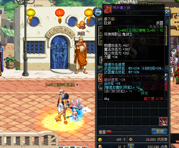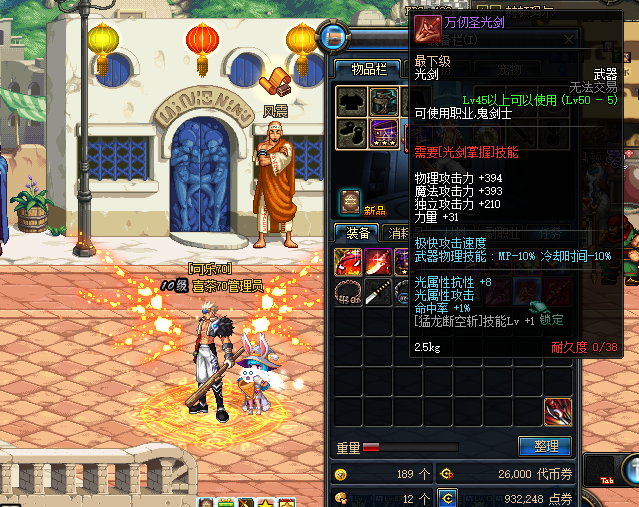 不过不用担心,有替代选择!50级的紫装光剑——万圣刃,是魔龙双隐剑的绝佳平替。万圣刃的属性优良,加上光属性攻击,绝对能作为剑圣的毕业装备。虽然价格也不便宜,但在外观和属性上都是非常出色的武器。