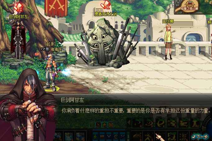 在阿拉德大陆的一个热闹城镇里,鬼剑士阿甘左一脸冷峻,他手持巨剑,沉默寡言但内心坚定无比。魔法师莎兰则是充满智慧和神秘,总是带着温和的笑容。这天,他们俩和神枪手凯丽组队一起去探索一个神秘的遗迹。