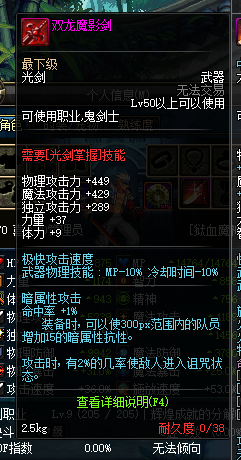 附加属性:双龙魔影剑还附加了一些特殊属性,如增加力量或攻击速度,进一步提升了使用者的输出能力。