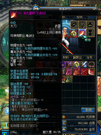 dnf60怀旧版本中,经典游戏道具介绍之流光星损刀