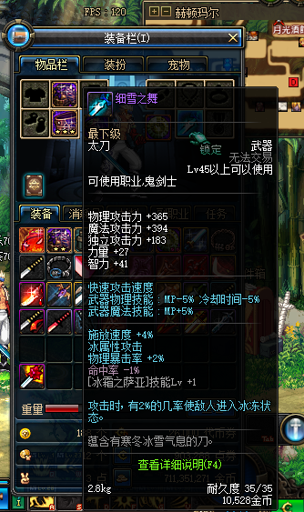 攻击速度: 太刀一贯的优势,细雪之舞依然保持了较高的攻击速度,使得鬼剑士职业能迅速发起连击。