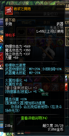 强大的魔法攻击力:作为法杖类武器,岩浆之拥抱提供了高额的魔法攻击力,这是当时所有法师职业玩家最为看重的属性。法系职业在装备这把武器后,无论是在PVE还是PVP中都能感受到伤害的飞跃。